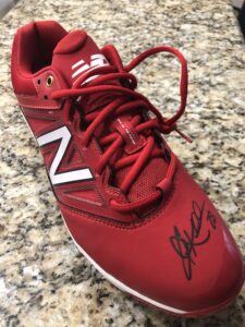 An autographed Corey Kluber New Balance cleat